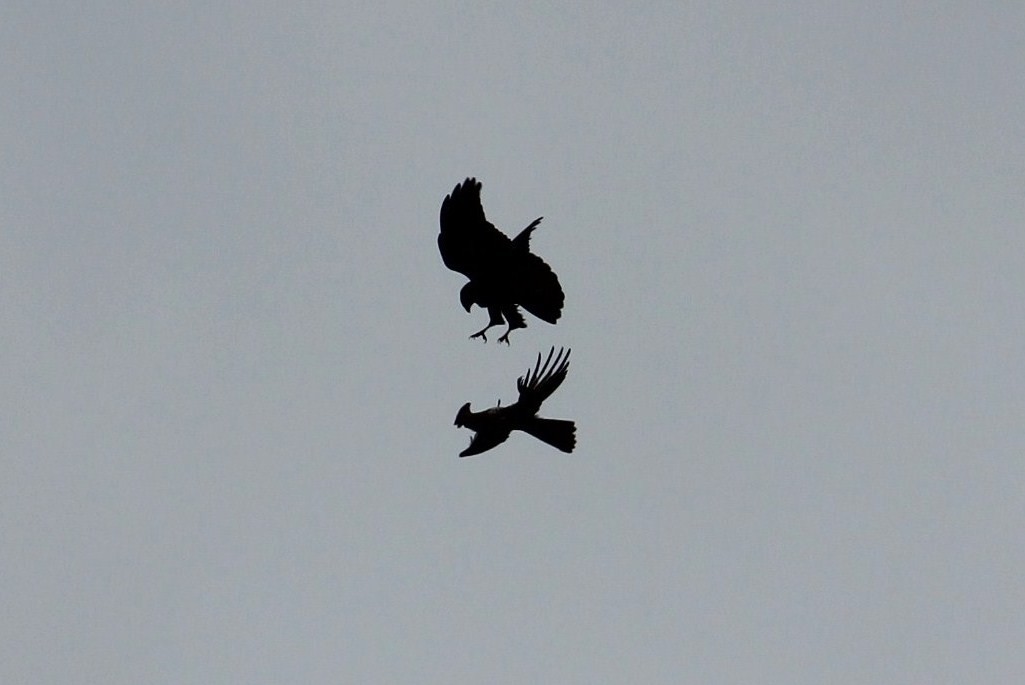 Mais uma vez o Vasco Valadares teve a gentileza de partilhar as suas fotos com a Arca. Desta vez captou o intrincado bailado de duas águias-de-asa-redonda (Buteo buteo) sobre a Calçada de Carriche, no Lumiar, em Lisboa. Provavelmente trata-se de uma águia residente a impor respeito a um visitante, e não um ritual de acasalamento.