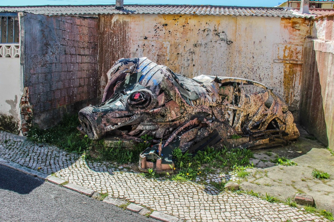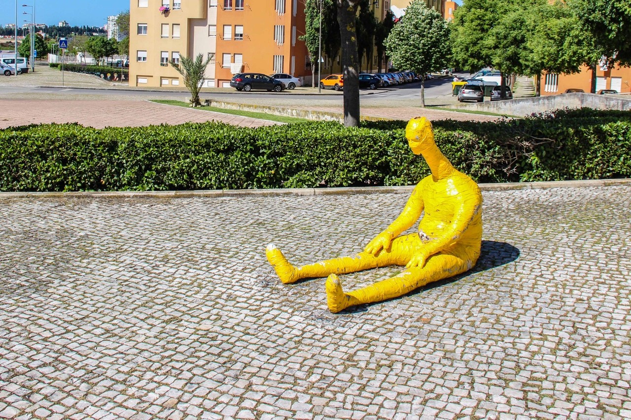Para visitar as pinturas, consulte o site da Junta de Freguesia de Carnide ou a página da Boutique da Cultura no Facebook. Relembro que também pode visitar a Quinta do Mocho, onde pode optar pelo passeio guiado (disponível todos os dias) por guias do próprio bairro, ou por passeio e almoço típico africano.O Festival MURO vai além da arte urbana e inclui conferências, cinema, oficinas, música e animação de rua. A 2.ª edição do festival realizou-se em 2017, em Marvila, e a 3.ª acontece este mês, entre os dias 23 e 26, no Lumiar. Além das pinturas, o Festival MURO trouxe outras expressões de arte urbana ao Bairro Padre Cruz, nomeadamente esculturas, como o Pi G de Bordalo II e o "estúpido" — entretanto baptizado de Nélson pela população — da autoria de Robert Panda. Se visitar o Nélson na próxima semana talvez o encontre com um cachecol vermelho ao pescoço, pois tal já é tradição quando o Benfica ganha o campeonato.