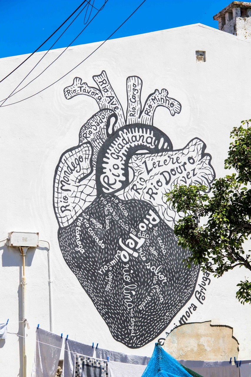 As ruas do bairro velho têm nomes de rios, o que inspirou esta obra de Leonor Brilha.