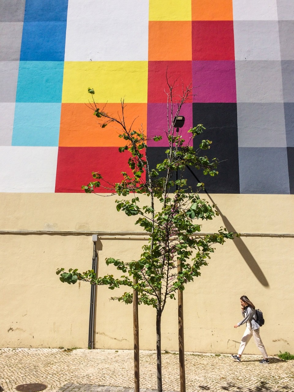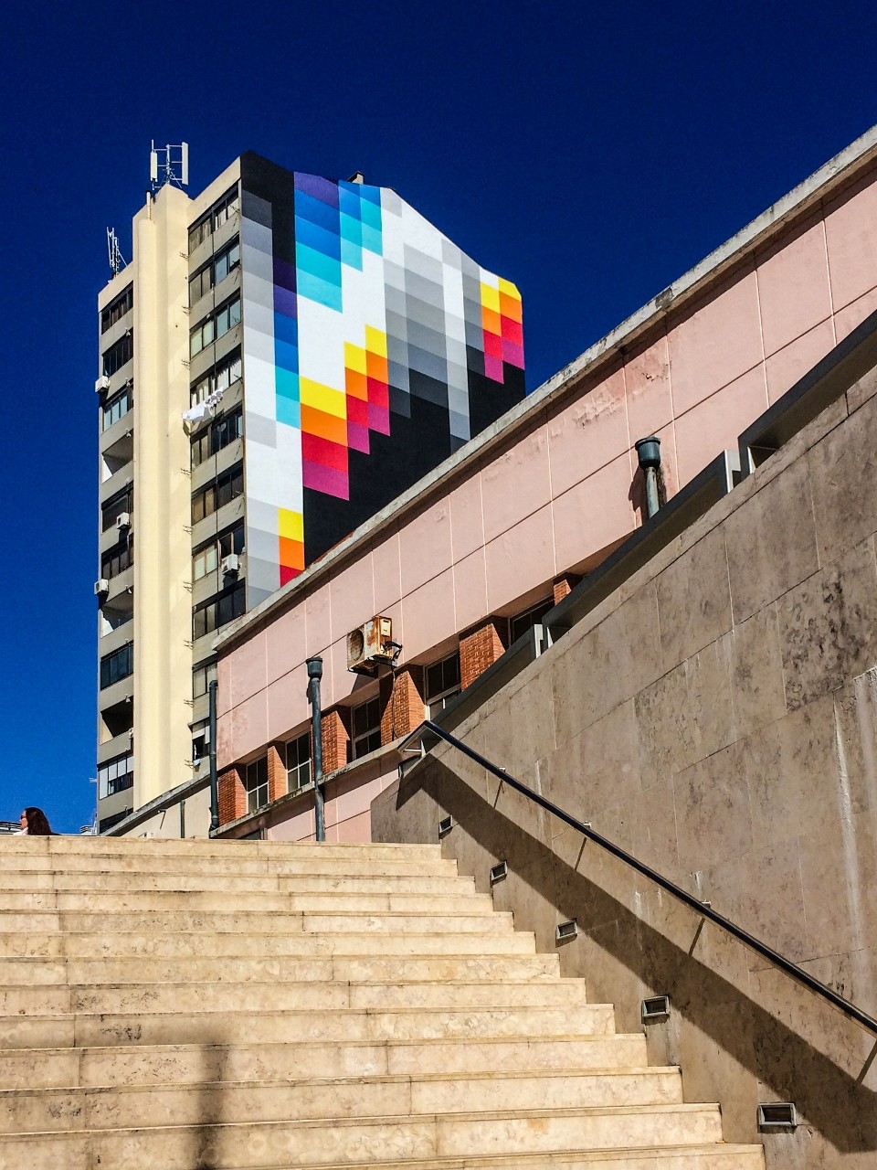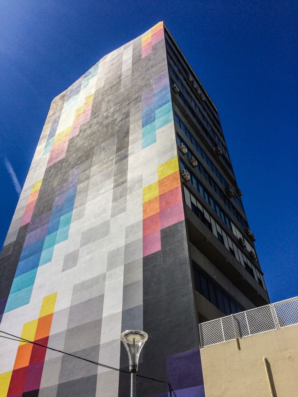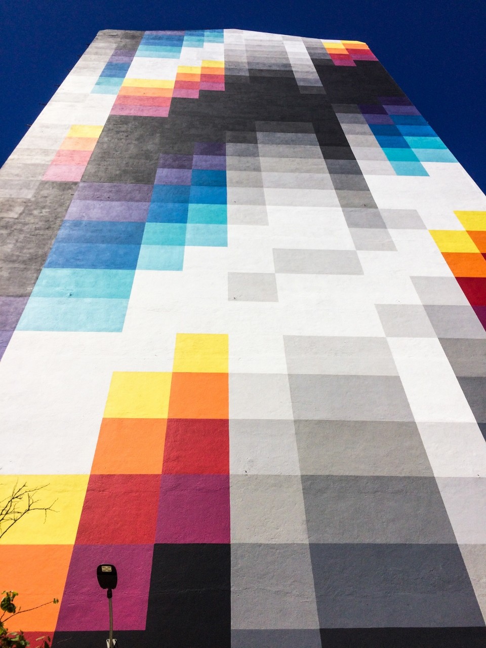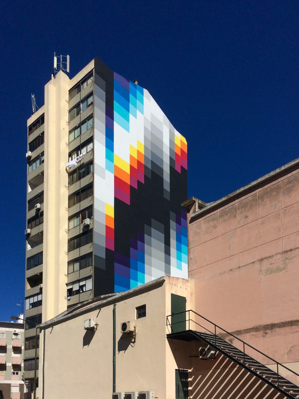 O artista argentino-espanhol Felipe Pantone pintou este mural de 45 metros de altura em Março de 2017, no Lumiar, em Lisboa. A obra pertence à série Chromadinamica.