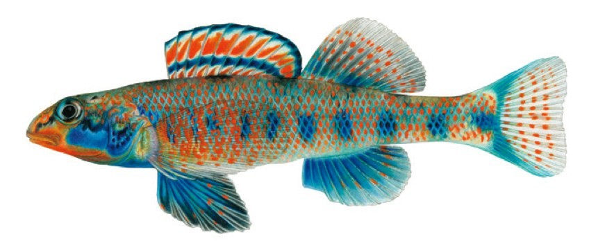 A descrição das novas espécies de percas (família Percidae) fez-se com base no colorido padrão dos machos, visível nas belas ilustrações do artista Joseph Tomelleri, que gentilmente cedeu as imagens à Arca.Etheostoma clinton. Rios Caddo e Ouachita, Arkansas. A mais pequena das cinco espécies - machos e fêmeas medem cerca de 34 mm.