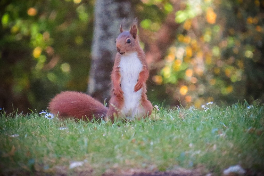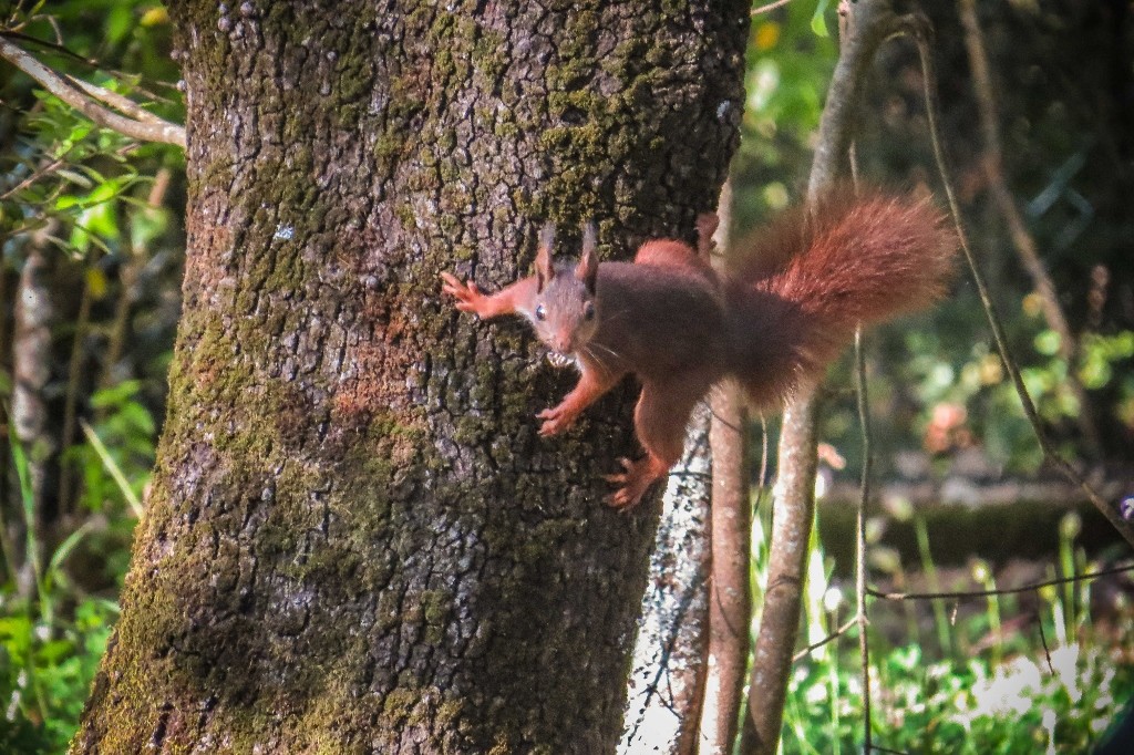 O esquilo-vermelho é, de facto, avermelhado, mas também pode ser castanho ou, até, preto. Mede entre 18 e 24 centímetros, mais os 17 centímetros da cauda (que no Inverno serve de cobertor). Pesa cerca de 450 gramas. E é um excelente nadador!