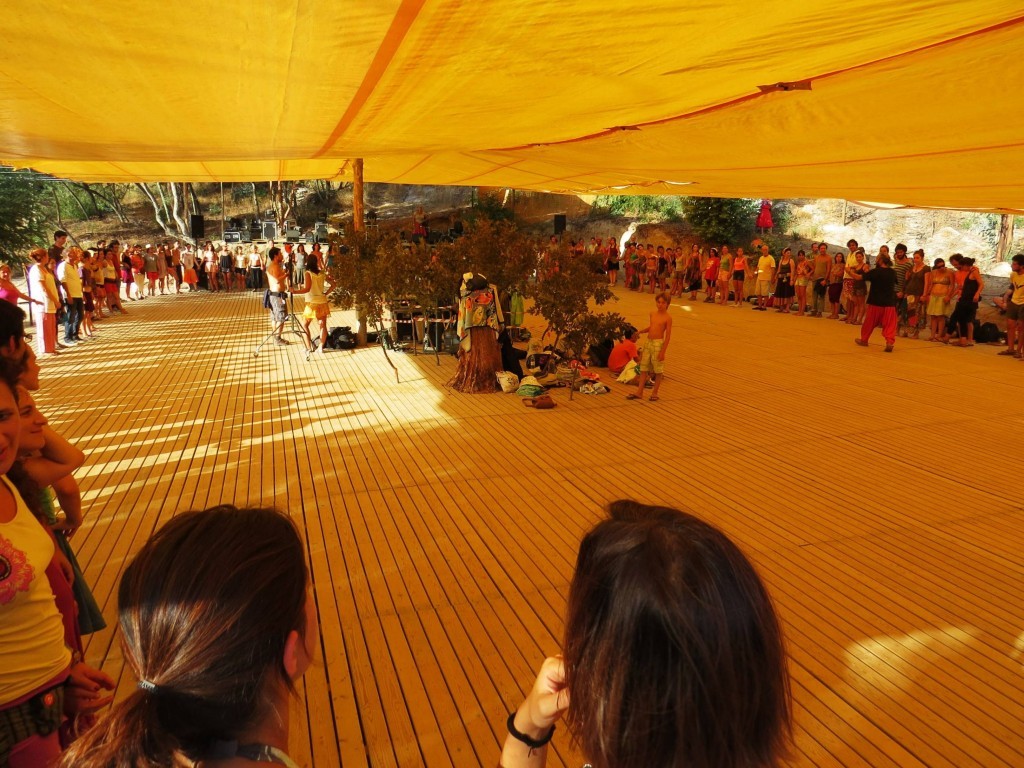 Nesse e noutros aspectos a organização – a cargo da Associação Pédexumbo – soube tirar o melhor partido de o recinto encontrar-se em plena floresta (ainda que nela predominem eucaliptos e acácias), por exemplo, construindo um palco em torno de uma árvore. Lá em baixo, naquilo que baptizámos de “praça central” (onde está a maior parte da restauração), as várias actuações, aparentemente espontâneas, repescaram o espírito de “animação de rua”, que promove a interacção entre artistas e público, e que de certa forma andava arredado do Andanças.ANIMAÇÃO DE RUA