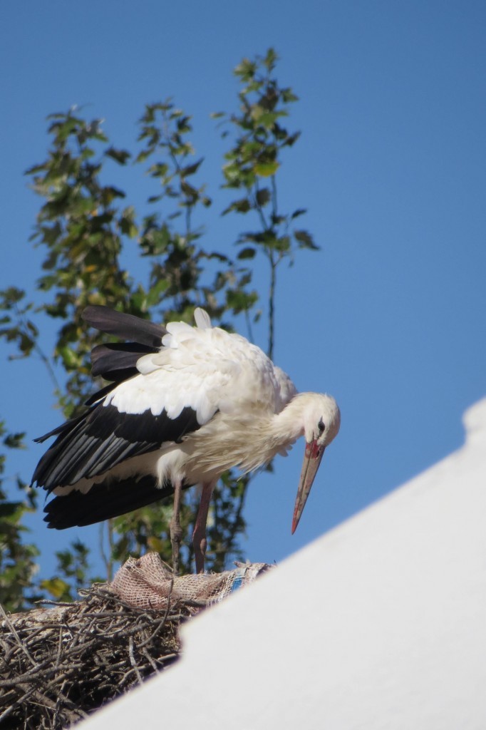 Segue-se o movimento inverso, mais lento, que termina com a cabeça para baixo e o bico a apontar para o chão, como uma vénia.De facto, esta exibição serve de cumprimento entre indivíduos, mas também tem outras funções sociais, como intimidar ou reforçar laços após a cópula.81 seguidores