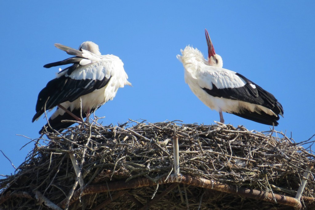 Um é o som produzido pela colisão do maxilar e da mandíbula. Este barulho, forte como o bater de castanholas, tem vários significados consoante o ritmo. Por exemplo, é lento durante o acasalamento e rápido enquanto sinal de alerta.