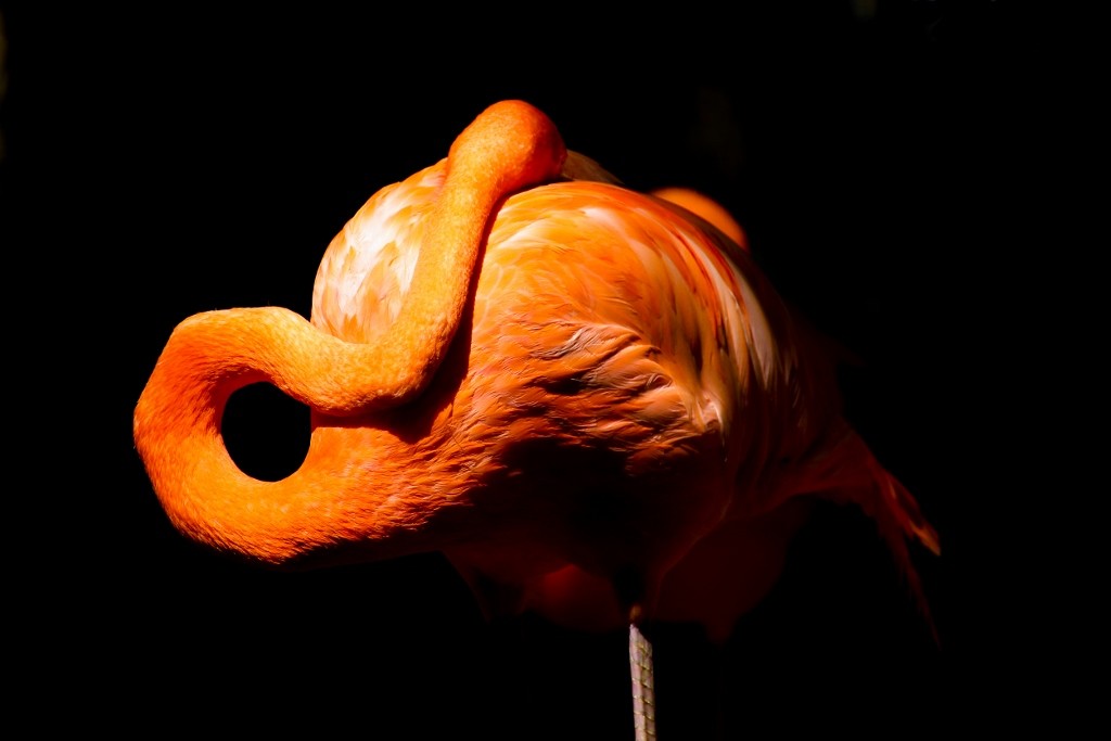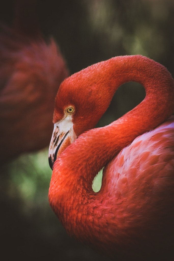 Há 6 espécies de flamingos. A que existe em Portugal é a maior e dá pelo nome de flamingo-comum (Phoenicopterus roseus). A espécie deste post (que fotografei este mês no Jardim Zoológico de Lisboa) é a que tem a cor mais intensa e é conhecida por flamingo-rubro (Phoenicopterus ruber).