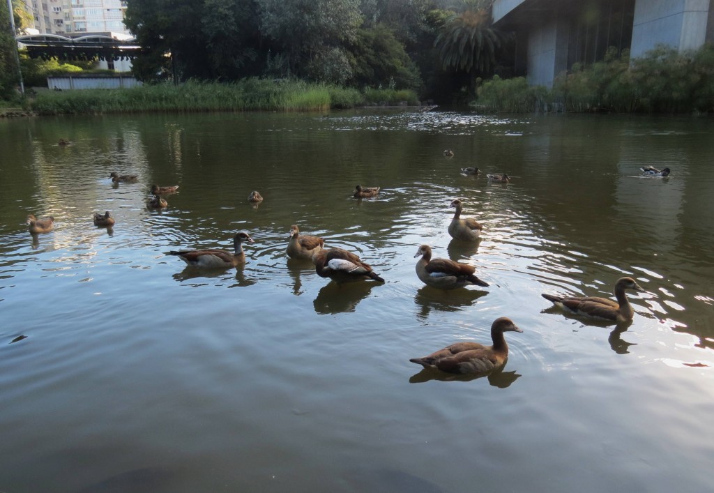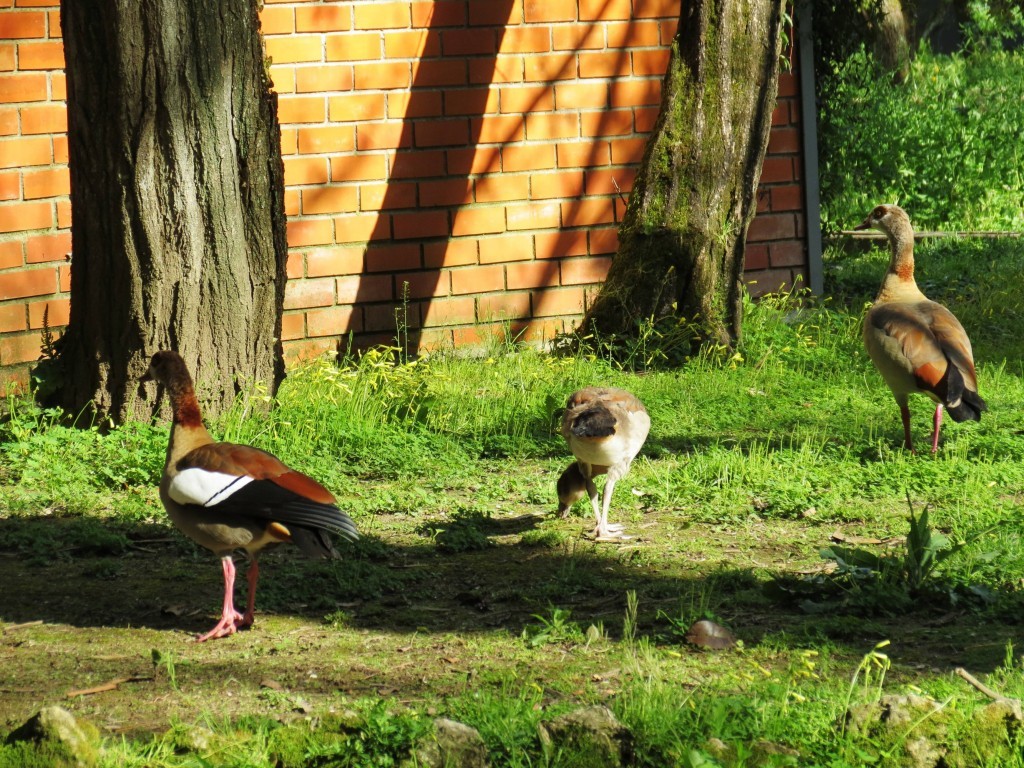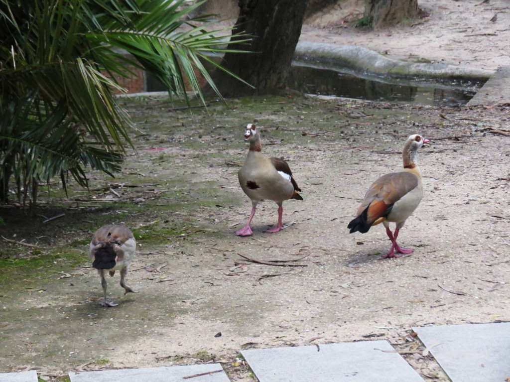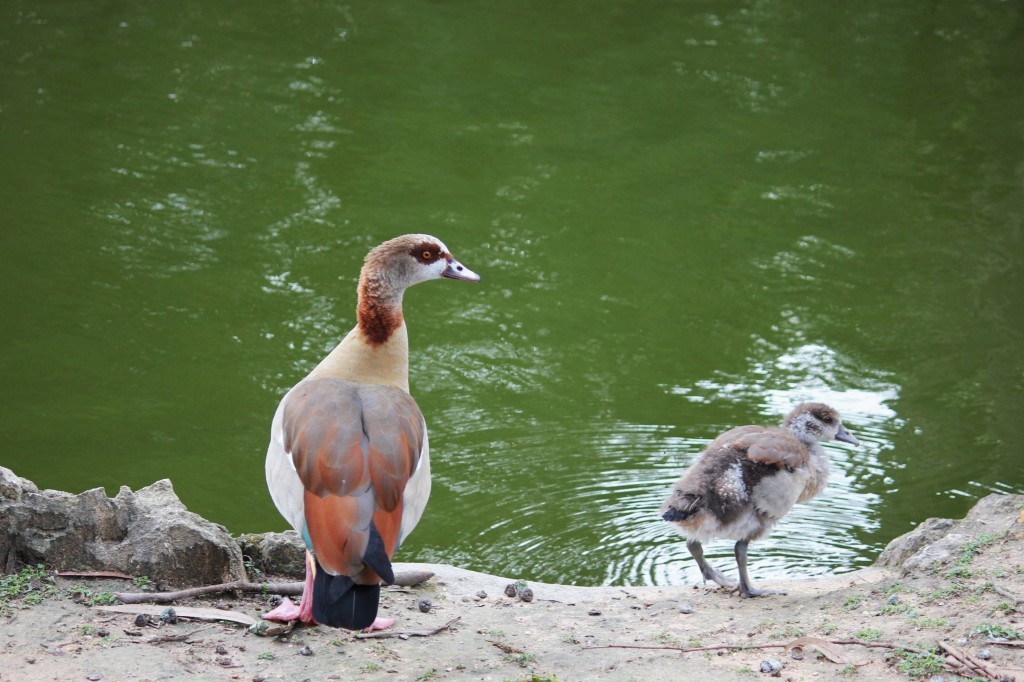 Os pais têm-no sempre debaixo de olho e estão bastante mais agressivos para os patos-reais e pombos que por ali andam.
