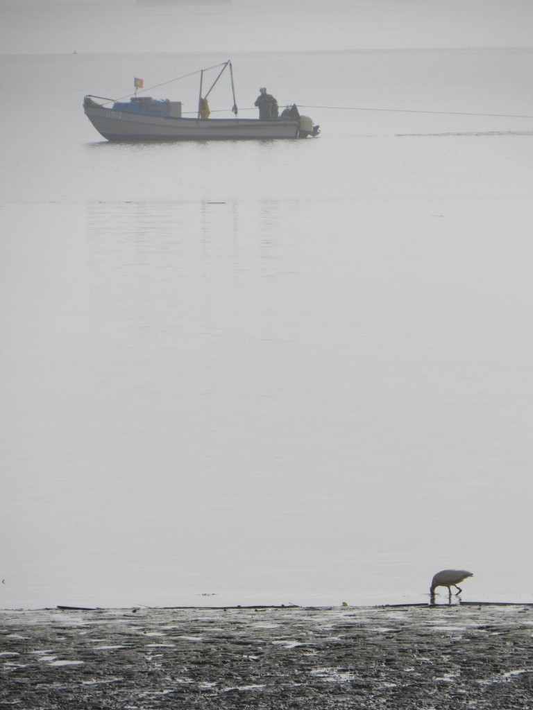 Fotografei as três espécies deste post há duas semanas. Como nos exames, posso também aqui errar na identificação, mas à partida a garça (2.ª e 3.ª foto) é uma garça-branca-pequena (Egretta alba), pelo tamanho, branco da plumagem e patas amarelas (as da garça-branca-grande são escuras). Os borrelhos (4.ª e 5.ª foto) são borrelhos-grandes-de-coleira (Charadrius hiaticula), por não terem anel amarelo à volta do olho, por terem coleira completa (há borrelhos com "coleira-interrompida"), e por os juvenis (5.ªfoto) terem risca branca sobre o olho (os do borrelho-pequeno-de-coleira não têm, e é uma espécie mais rara).
