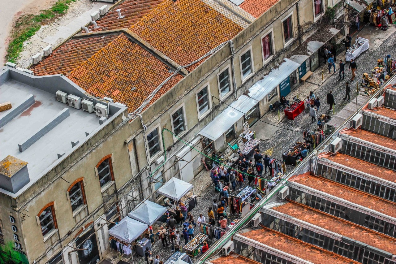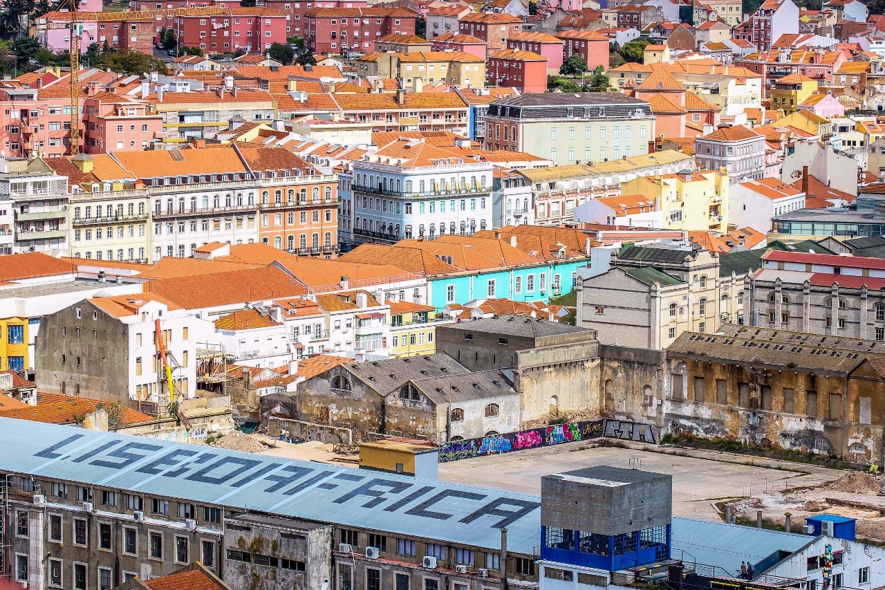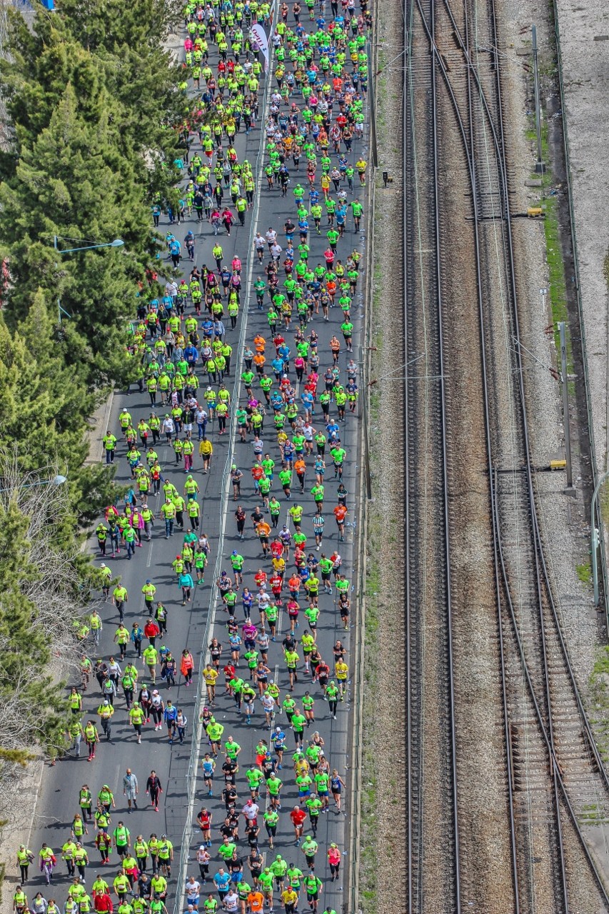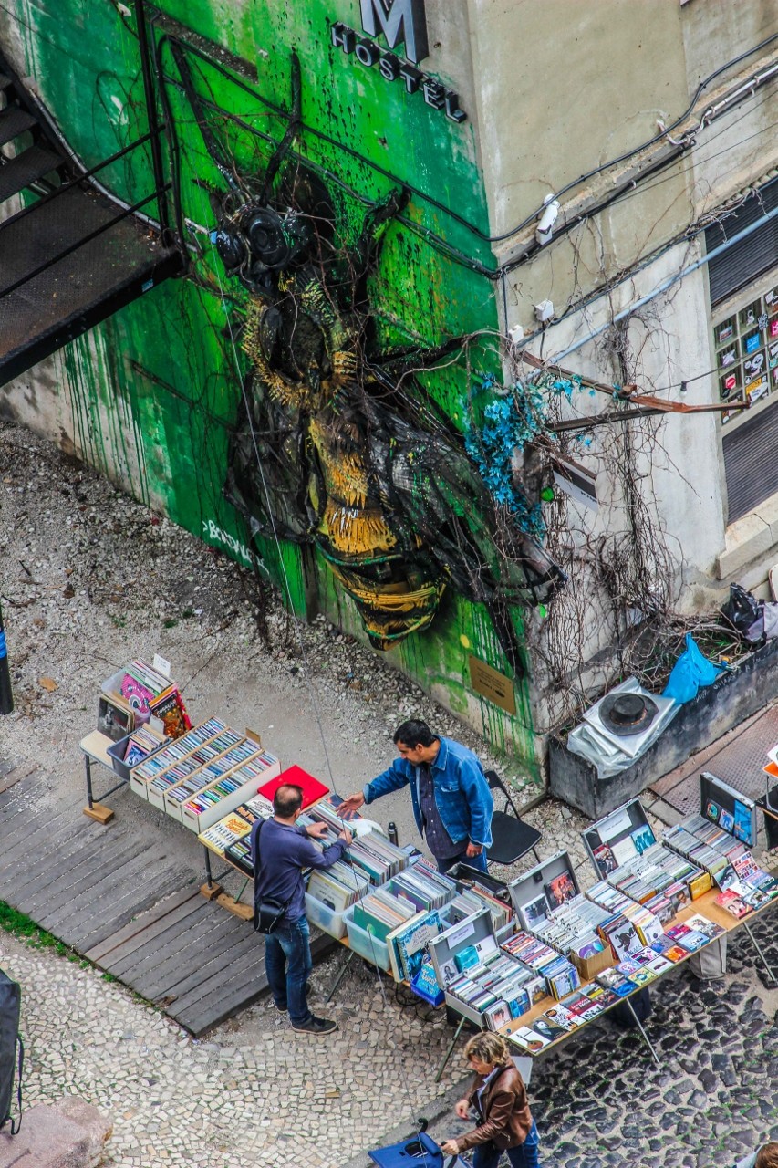 É inevitável: quando se olha de cima e ao longe para Lisboa, não só emergem as cores típicas da cidade, como a paisagem transforma-se num quadro geométrico onde se destacam linhas e quadrados. Os humanos? Somos formiguinhas - o maior ser "vivo" é mesmo a abelha do Bordalo II na Lx Factory. A mini-maratona do fim-de-semana passado permitiu-me atravessar a Ponte 25 de Abril a pé e fotografar alguns detalhes das freguesias de Alcântara e da Estrela.