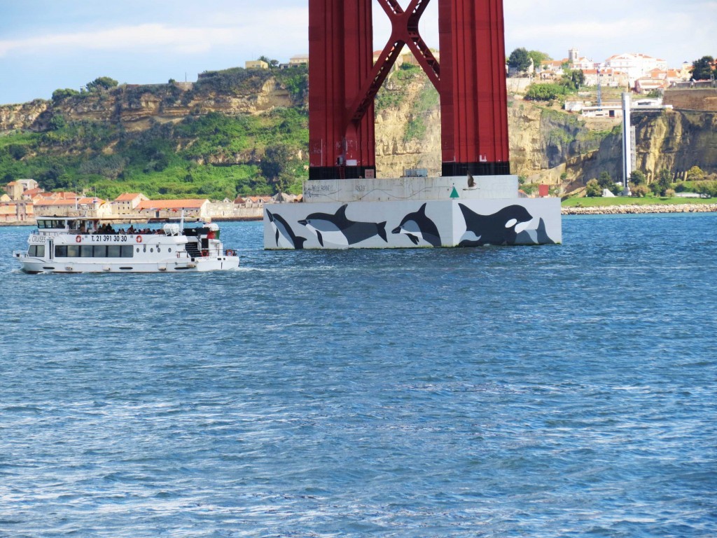 Já viram a nova decoração das sapatas da Ponte 25 de Abril, em Lisboa? A Estradas de Portugal inspirou-se nos recentes avistamentos de golfinhos no Tejo e incluiu pinturas de golfinhos, alfaiates, orcas, flamingos e maçaricos nos trabalhos de revestimento de proteção das sapatas (fotos em baixo).