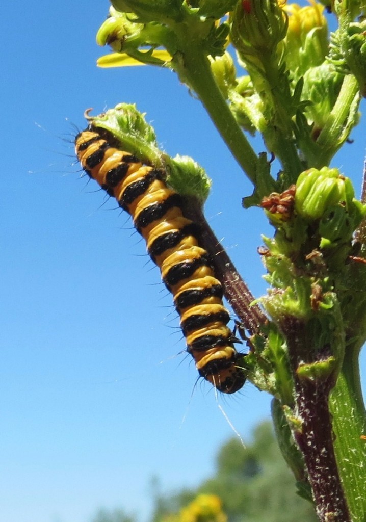 Como se o padrão colorido vermelho, laranja, amarelo preto e branco não fosse suficiente para dissuadir qualquer predador, a lagarta exibe ainda uns longos pêlos brancos.