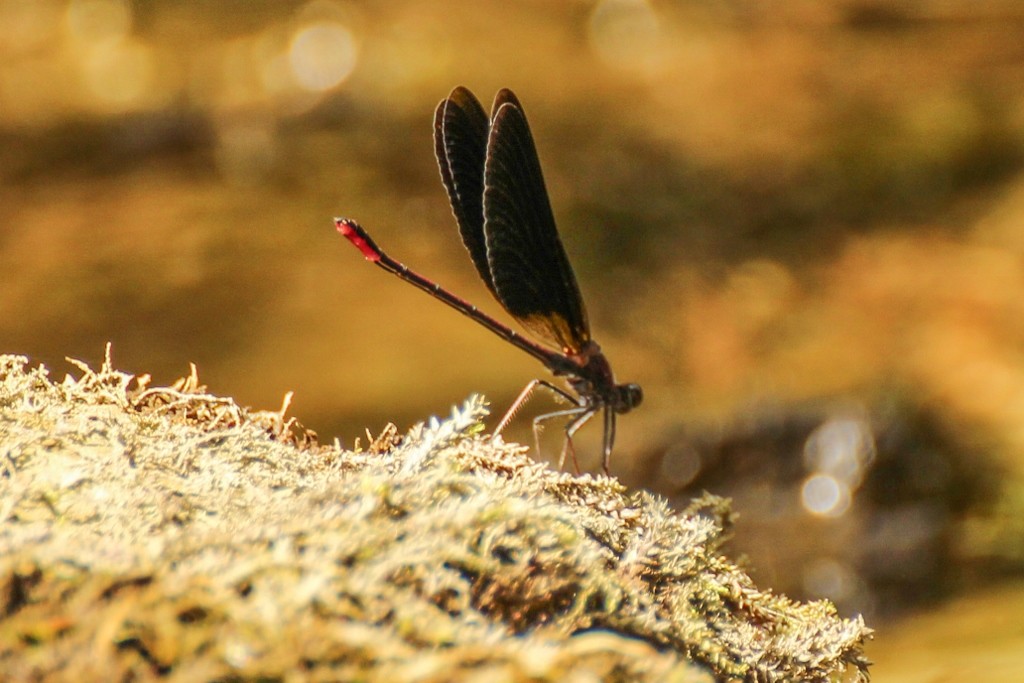 O gaiteiro-azul (Calopteryx virgo) é um bio-indicador da qualidade da água e do bom estado de conservação da vegetação ripícola. É por isso um bom sinal ter encontrado esta libelinha nos vários poços (piscinas naturais) que visitei durante o Tradidanças.