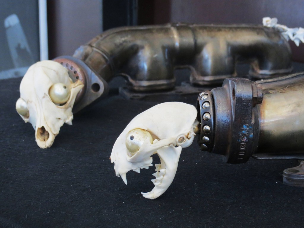 Tampas de garrafas, peças de motores, sacos de plástico, madeira e ferro são outros materiais encontrados pelos artistas de Skeleton Sea e transformados em obras de arte.Uma das peças mais emblemática é Albatross Exhibitionist, construída no Quénia, em 2011.Esta ave, particularmente sensível ao plástico, é figura central no belo e inquietante filme produzido pela Skeleton Sea, com o mesmo nome da peça, que retrata a tragédia vivida nas ilhas Midway (já mencionadas aqui na Arca).