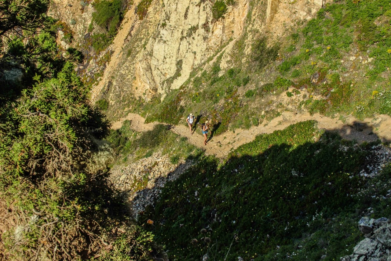 Quando se começa a descida veem-se ao longe, emolduradas pelo verde das escarpas e pelo azul do mar, duas enormes rochas. A mais pontiaguda, a da frente, é a Ursa, a maior, a de trás, é o Gigante.
