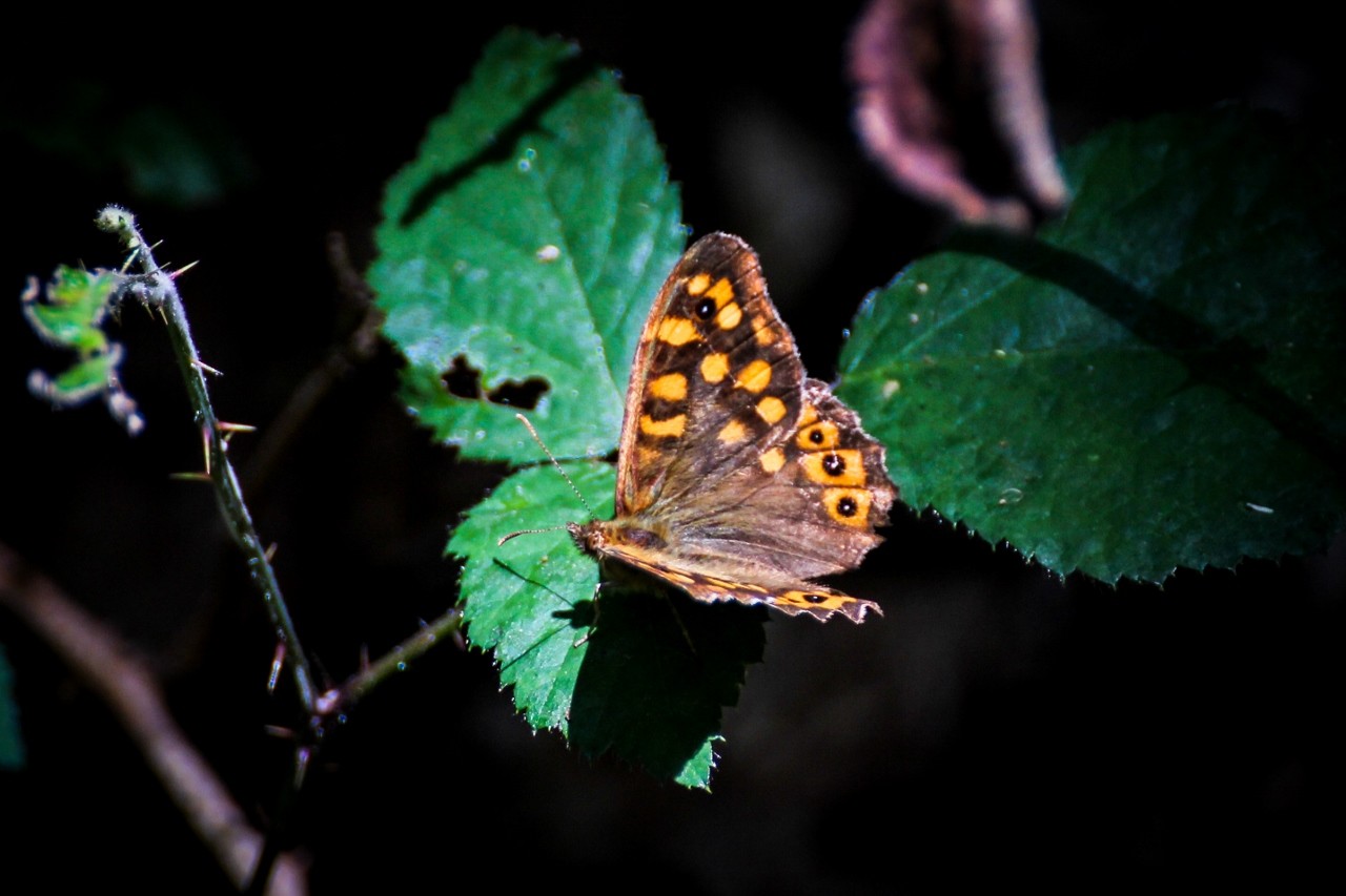 A borboleta fritilária-variegada (Melitaea phoebe) apresenta um padrão axadrezado preto e alaranjado na face superior das asas.
