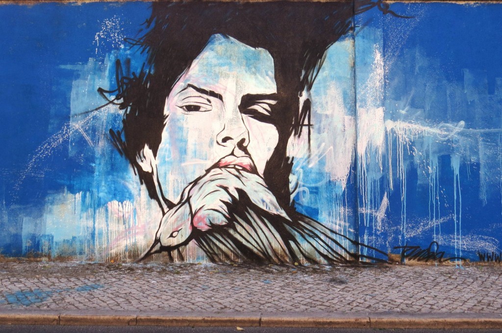 Voltando ao início da visita guiada, a primeira peça pertence ao italiano Fulviet (Fulvio Capurso), arquitecto, ilustrador, pintor, investigador e professor de desenho. Fica numa espécie de tapume, junto à entrada do Metro e colado ao Centro Universitário Padre António Vieira, espaço que o artista visitou e onde se inspirou no trompete que ouviu ser tocado e nos pássaros que cantavam.