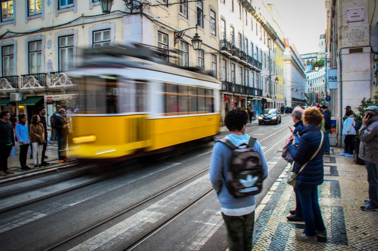 Paragens de autocarro e elétrico no Terreiro do Paço, em Lisboa. (Se tivesse usado um tripé o resultado teria sido melhor, mas, ainda assim, as fotos ficaram engraçadas.)