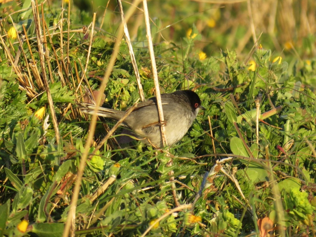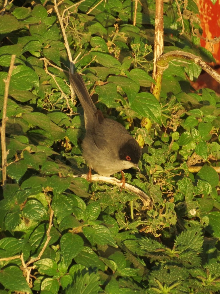 Sylvia melanocephala) tem a cabeça preta e um característico círculo vermelho em volta do olho. É a espécie mais abundante