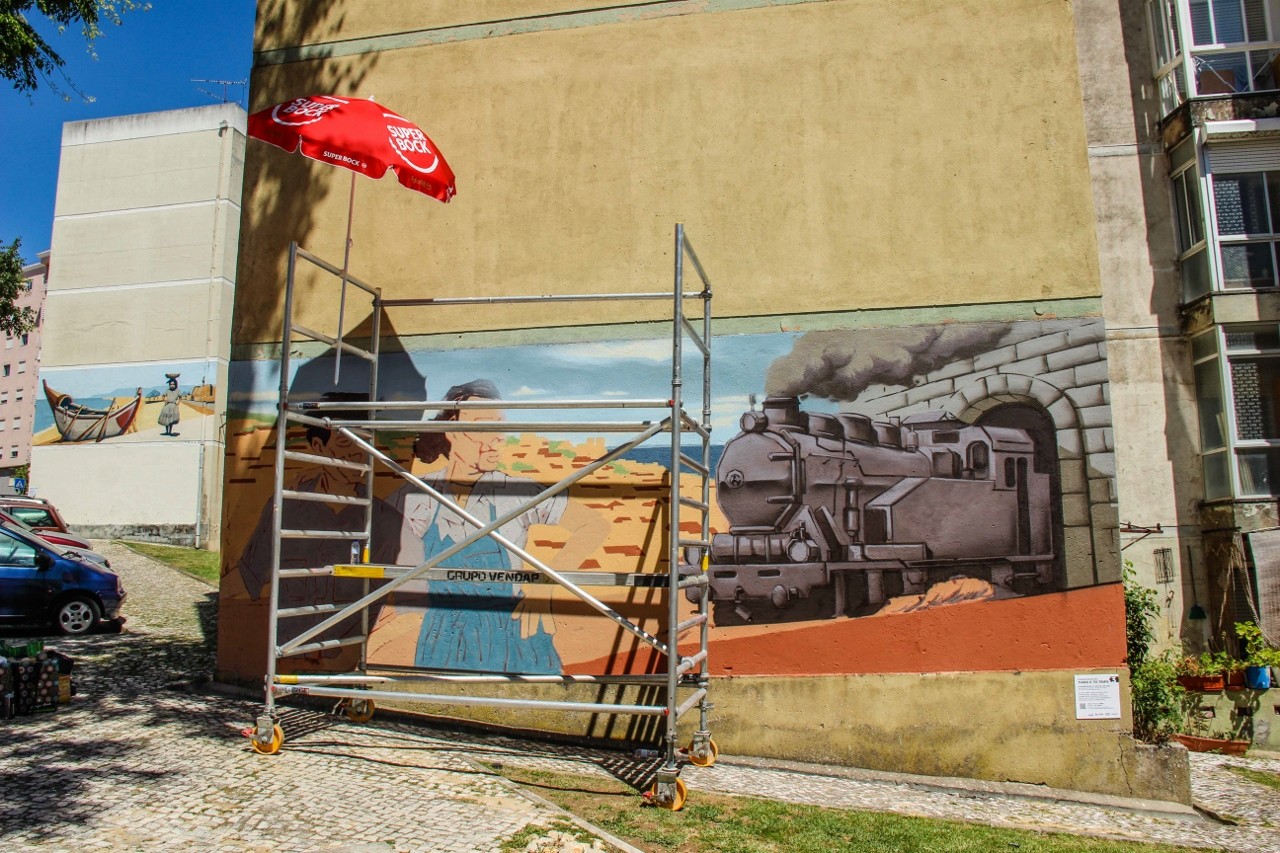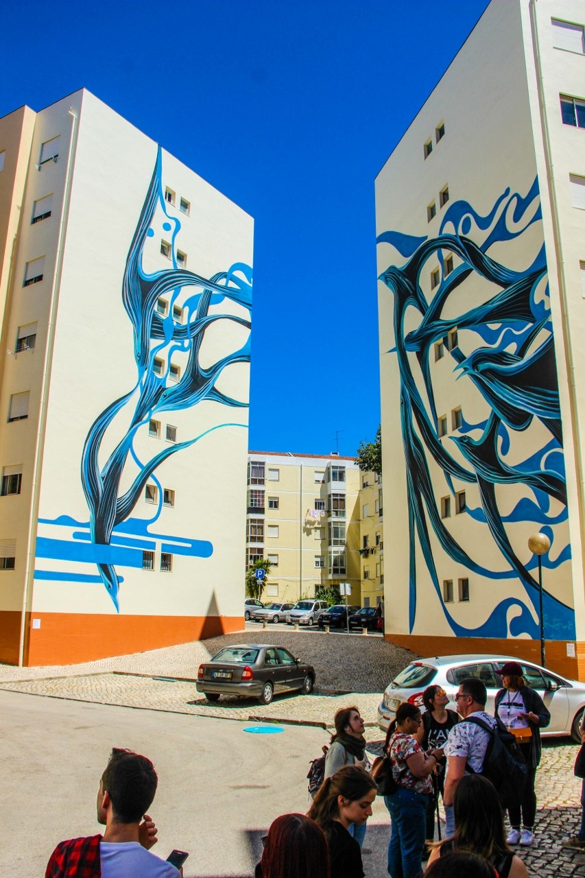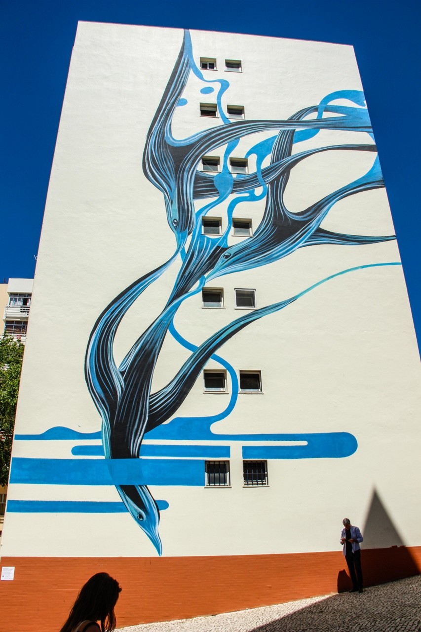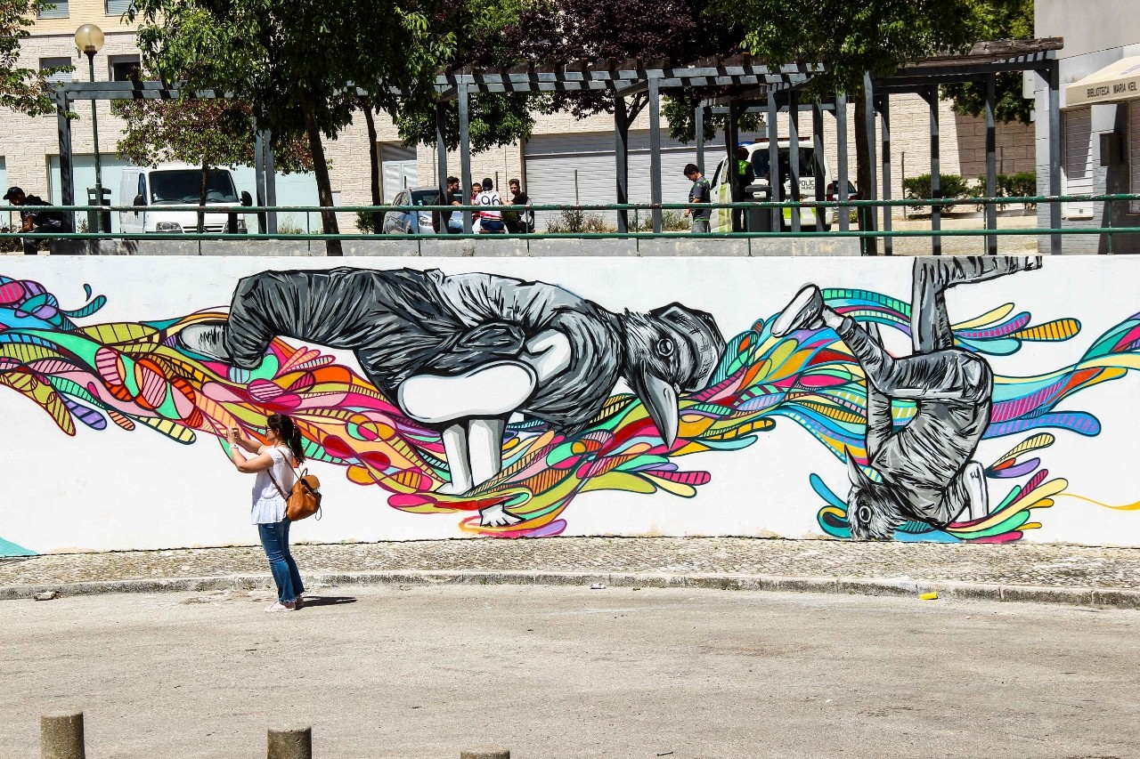 O festival já acabou, mas há muito para ver. E entre as novas peças de arte urbana encontram-se algumas mais antigas, como a altíssima empena de Francisco Vidal, pintada no âmbito da Lisbon Week 2017 (iniciativa que, no Lumiar, também incluiu esta obra).