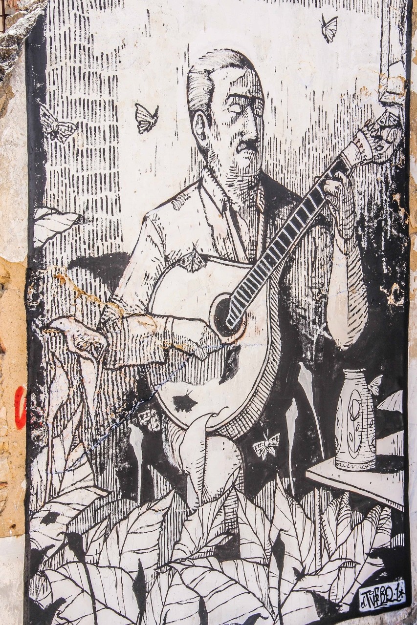 Chegados à rotunda, no final desta Estrada da Torre, há muito para ver. O fado chega pelas mãos de Catarina Glam com "A Fadista", onde se lê "De quem eu gosto, nem às paredes confesso", e que também teve uma versão esculpida em madeira (que não cheguei a ver). O português El Tvfer One traz-nos a natureza e as memórias de ouvir fado na casa da avó. Costah homenageia a cantora Dina com uma obra onde se lê "Há sempre música no ar".