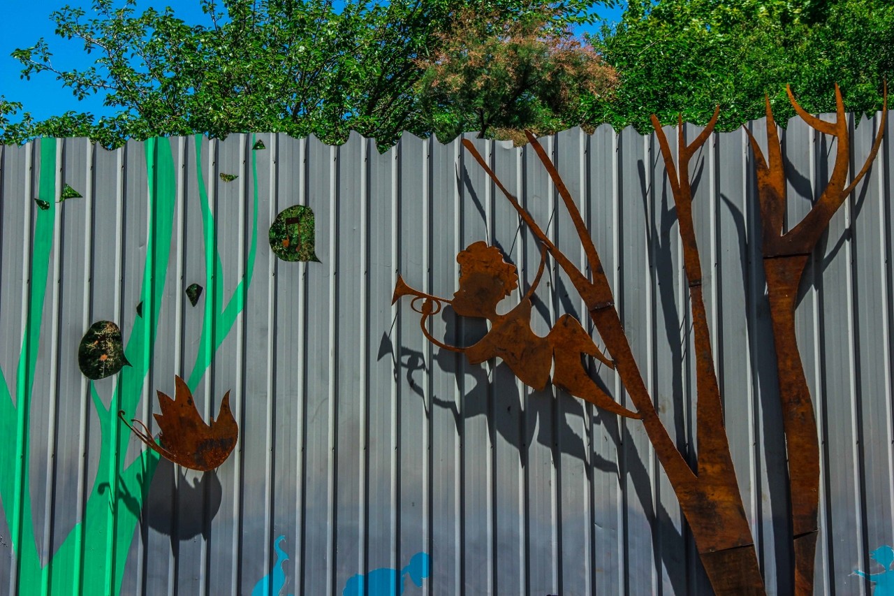 Voltando ao início da visita guiada, a primeira peça pertence ao italiano Fulviet (Fulvio Capurso), arquitecto, ilustrador, pintor, investigador e professor de desenho. Fica numa espécie de tapume, junto à entrada do Metro e colado ao Centro Universitário Padre António Vieira, espaço que o artista visitou e onde se inspirou no trompete que ouviu ser tocado e nos pássaros que cantavam.