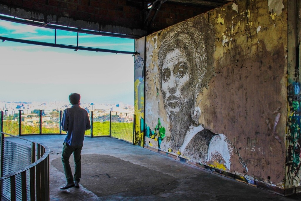 Rua dos Cegos, n.º 20, 22, por trás da homenagem de Vhils, e dos calceteiros, a Amália Rodrigues.